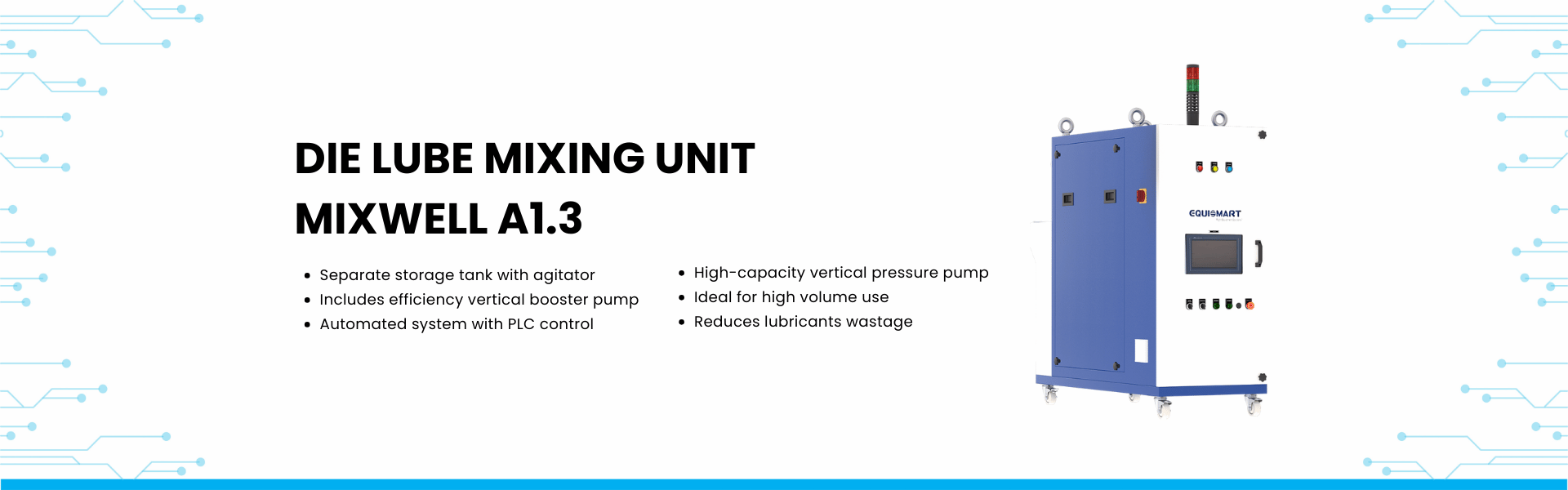 Equismart Mixwell Die Lubricant unit automates the dilution and delivery of release agents, ensuring accurate mixing and efficient spraying. This enhances product quality, reduces downtime and saves time and labor.